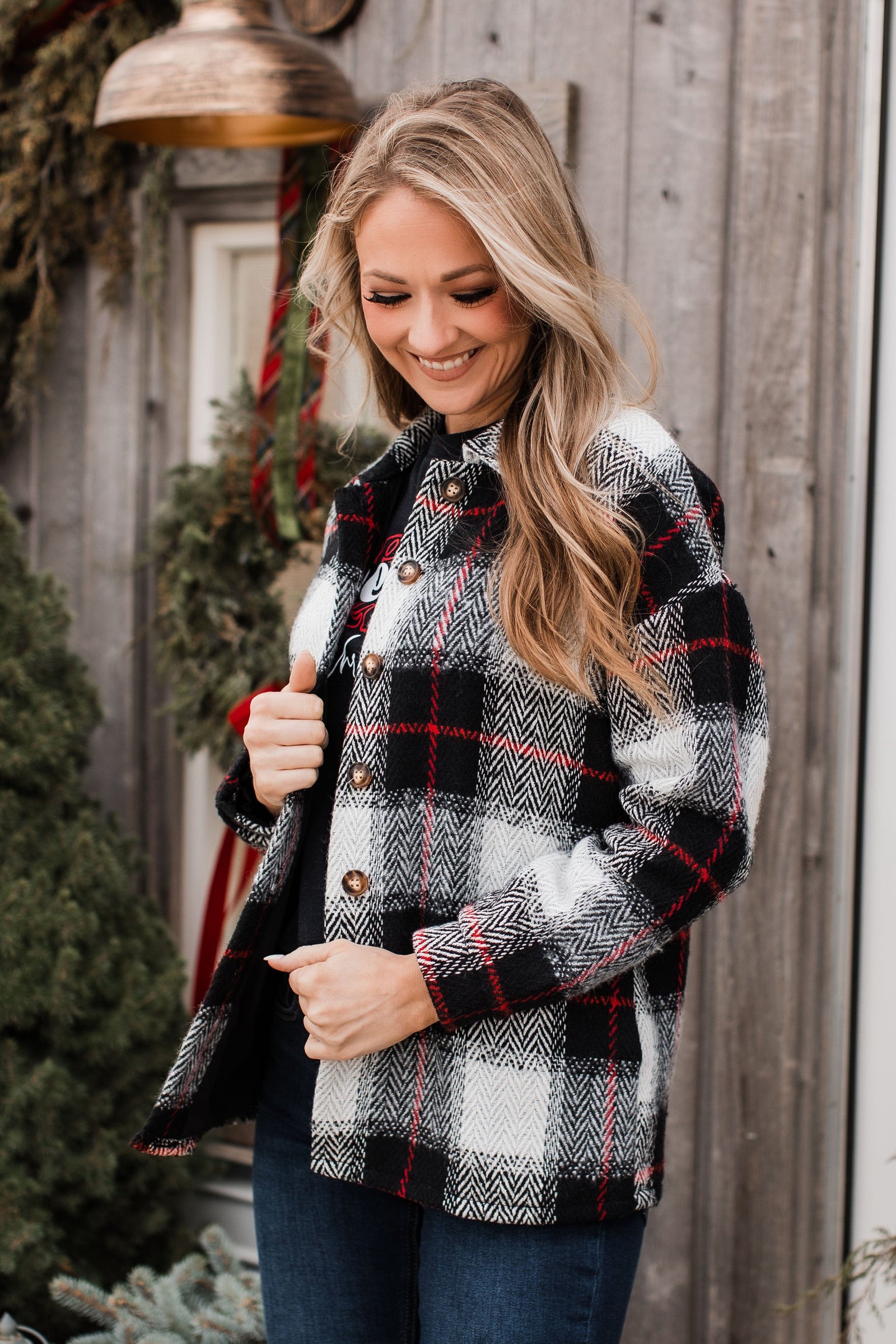 Campfire Nights Plaid Jacket Black Red The Pulse Boutique